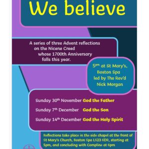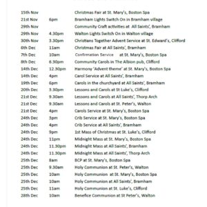 Parish Office opening times: 8.30am – 2.30pm Monday to Thursday (at St Mary’s Church, Boston Spa)