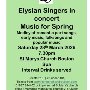 Parish Office opening times: 8.30am – 2.30pm Monday to Thursday (at St Mary’s Church, Boston Spa)
