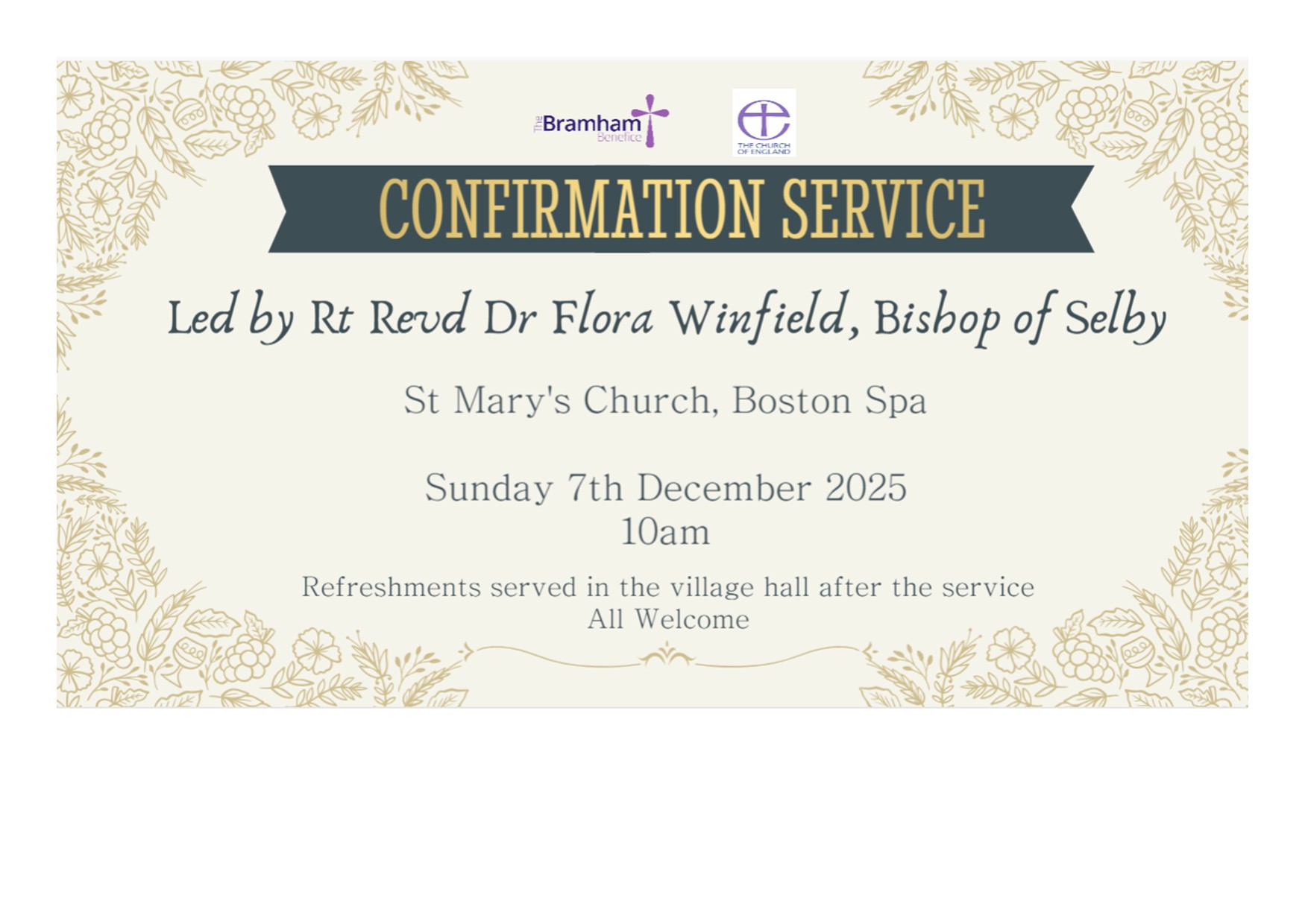 Confirmation Service at St Mary’s Church, Boston Spa Confimration Poster 2025 DEC + Add to Google Calendar + iCal / Outlook export 00 days 00 hours 00 minutes 00 seconds Search for: Meta Log in Entries feed Comments feed WordPress.org