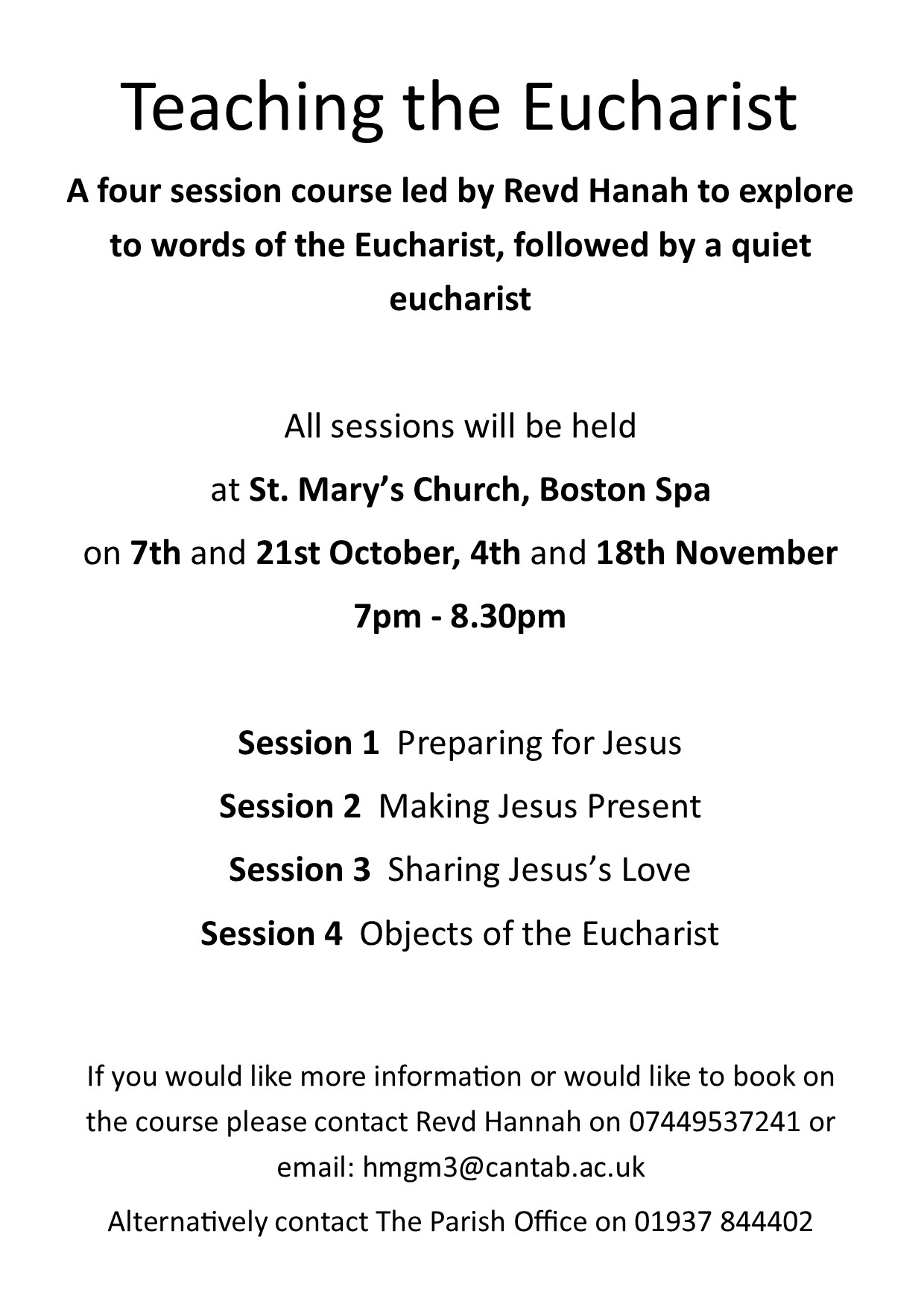 Teaching the Eucharist – 4 Lessons on the Words of the Eucharist Teaching The Eucharist + Add to Google Calendar + iCal / Outlook export 00 days 00 hours 00 minutes 00 seconds Search for: Meta Log in Entries feed Comments feed WordPress.org